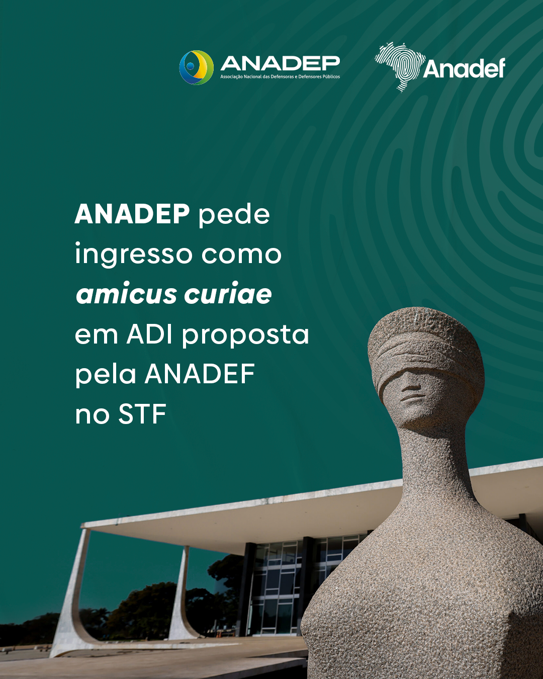 A ANADEF celebra o ingresso da Associação Nacional das Defensoras e Defensores Públicos (ANADEP) como amicus curiae na Ação Direta de Inconstitucionalidade (ADI) nº 7792, em trâmite no Supremo Tribunal Federal (STF).