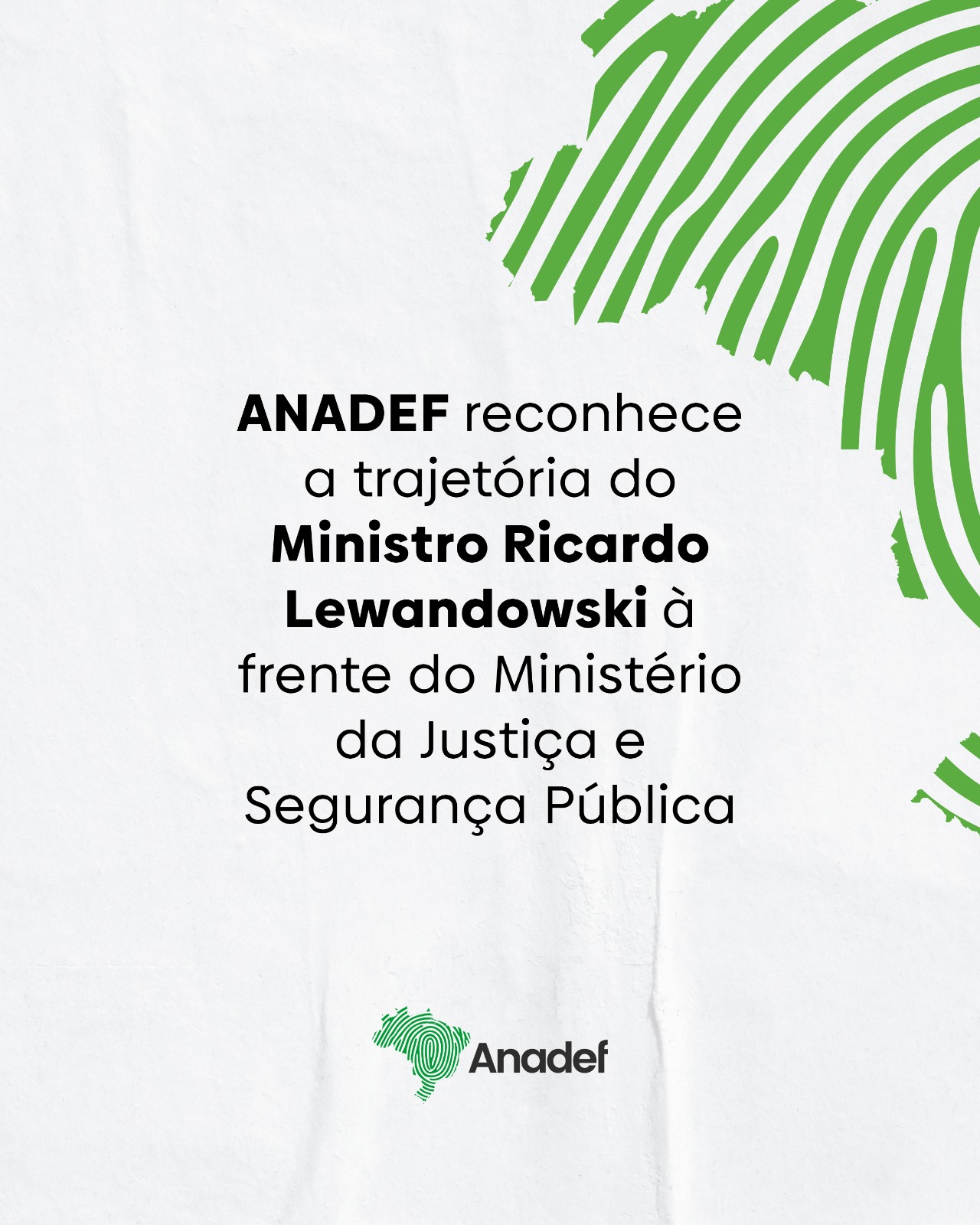 A ANADEF manifesta seu reconhecimento ao Ministro Ricardo Lewandowski, que encerrou na sexta-feira sua gestão à frente do Ministério da Justiça e Segurança Pública.